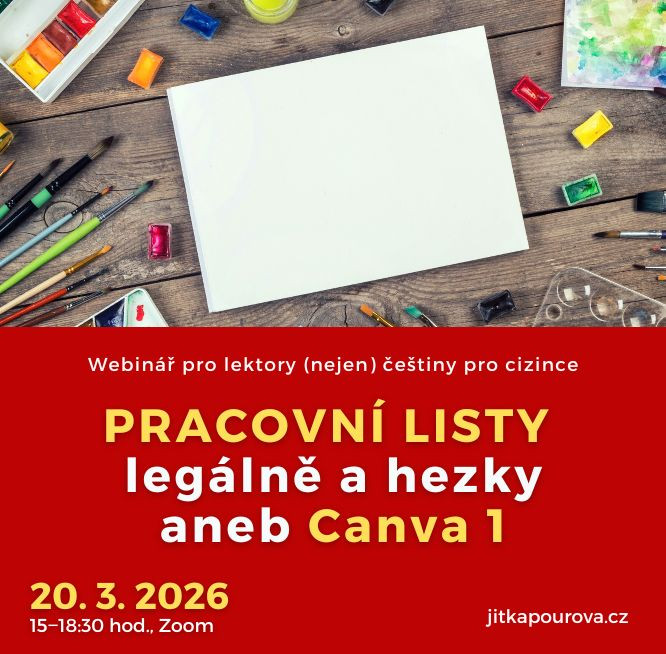 Češtinu pro cizince učím už řadu let, a proto si velmi cíleně vybírám semináře nebo webináře, kterých bych se chtěla účastnit. U Jitky Pourové je to ale sázka na jistotu. Letos jsem u ní absolvovala už dva webináře, první na téma Jak učit češtinu cizince – začátečníky, druhý s názvem Pracovní listy legálně a hezky.